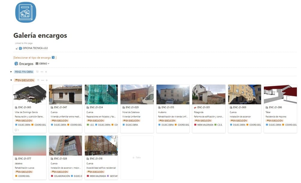 Plantilla de Notion para gestión de encargos y obras.